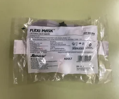 FEATURES :• Flexi Mask is designed for convenient oxygen therapy.• Moulded face mask is manufactured from non-toxic, non irritant medical grade PVC.• Provided with adjustable elastic strap for proper positioning of mask on the nasal area.• Swivel connector for convenience of attachment to the oxygen tube.• Two meter multichannel tube is provided to ensure continuous flow of oxygen.• Proximal end fitted with soft funnel shape connector for easy connection to oxygen source.• Individually packed in poly bag.• Box of 20/ Master Box of 200.